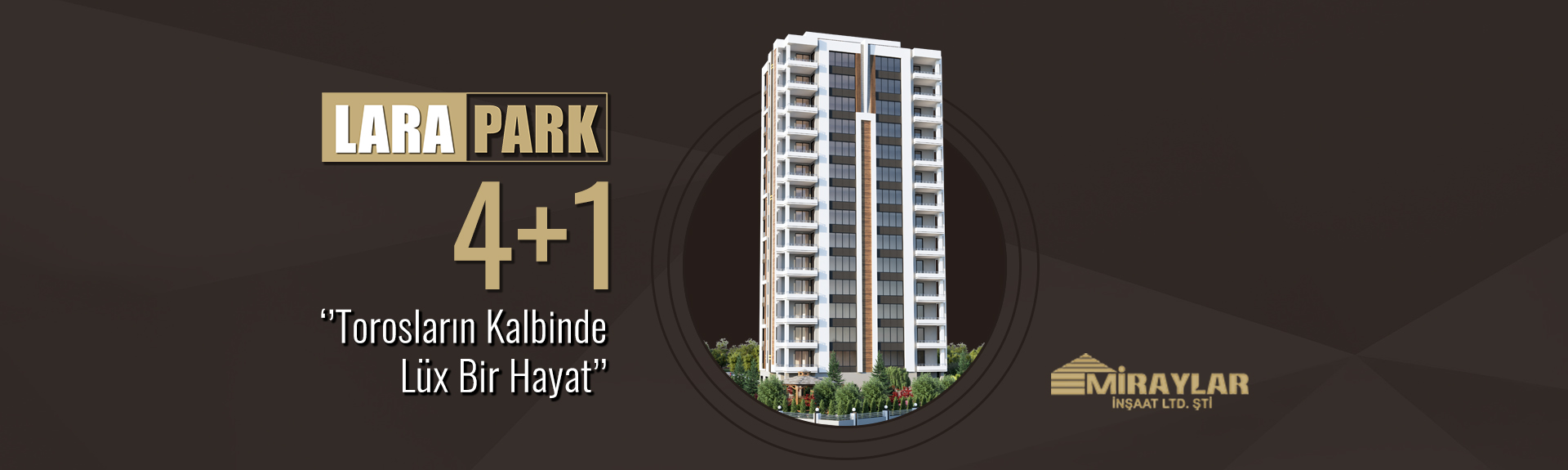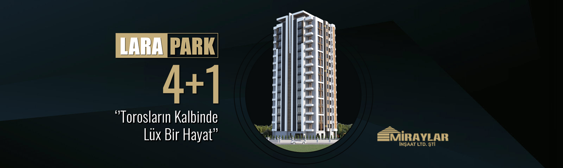 Mersin Toroslar Hüseyin Okan Merzeci mahallesi anfi tiyatro yanı, 3447m2 alan üzerine 2021 Mart ayında inşaasına başlanan projemiz z+14 kat, 28 adet 4+1 özel ve lüx dairelerden oluşacak, deprem yönetmeliğine uygun yüksek donanımlı modern inşaat teknolojileriyle inşaa edeceğimiz Lara Park projemiz, kalitesi ve mimari tasarımı ile sürekli değer kazanacak eşsiz bir proje olacaktır.